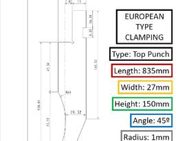 HIGH QUALITY CHROME MOLY STEEL PRESS BRAKE PUNCH Length 835mm Width 36mm Height ....
