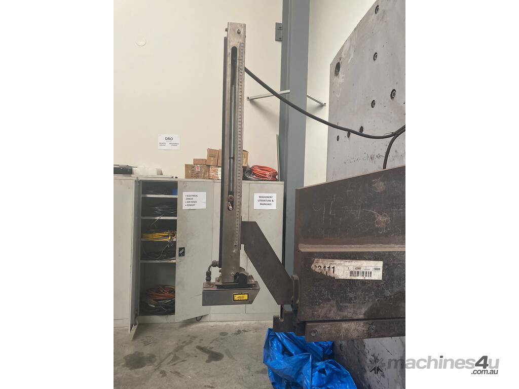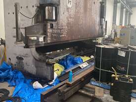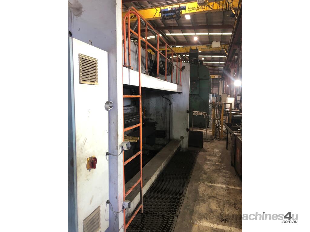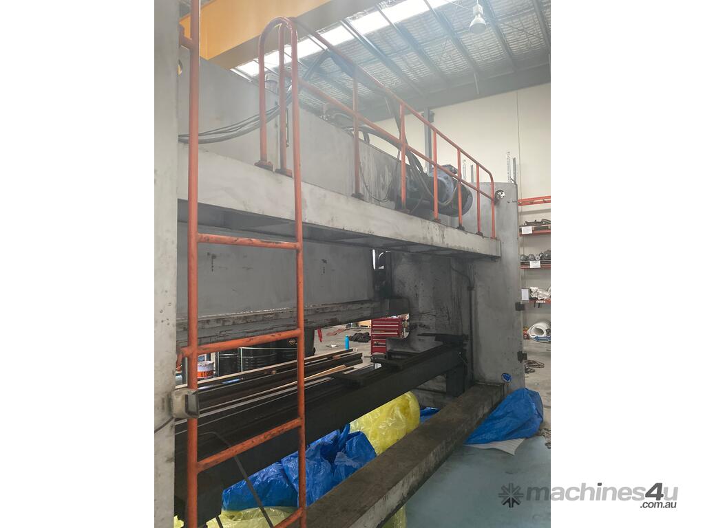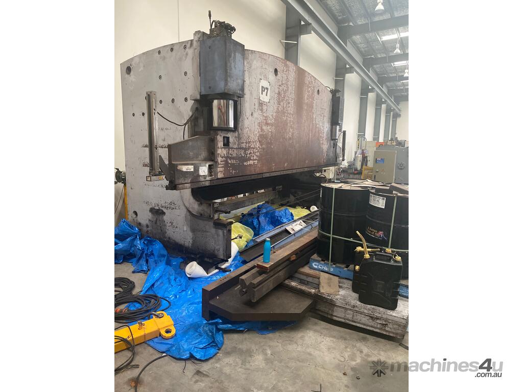 The large CMT press brake uses modern electronics and controller with parts still readily available, the press is stored in our factory with the bottom beam removed for storage purposes.
